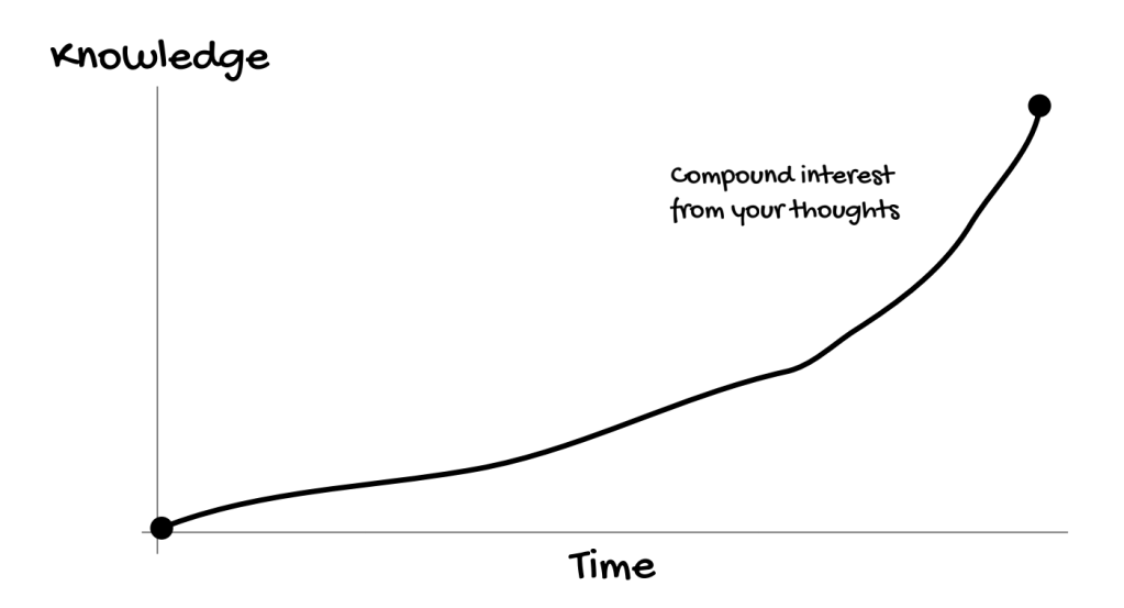การจดโน้ตเป็นการเชื่อมต่อจุดต่าง ๆ กลับไป ยิ่งเราใช้เวลาจดข้อมูลนานขึ้น ย่อมส่งผลดีต่อการพัฒนาความคิดเป็นทวีคูณ